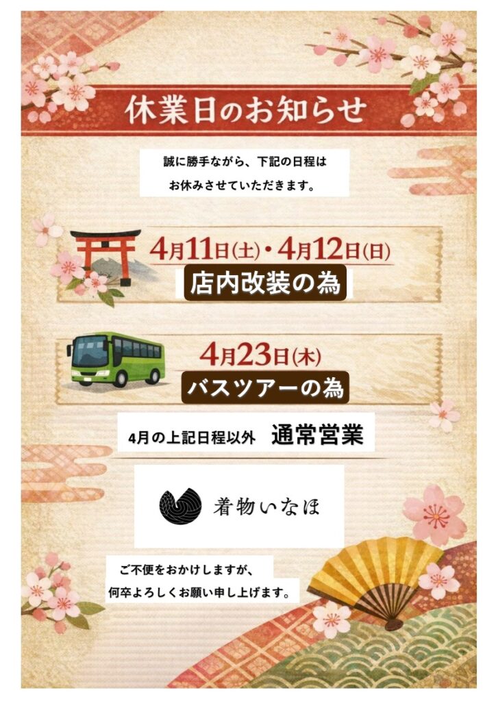 📢【四月の店休日のご案内】